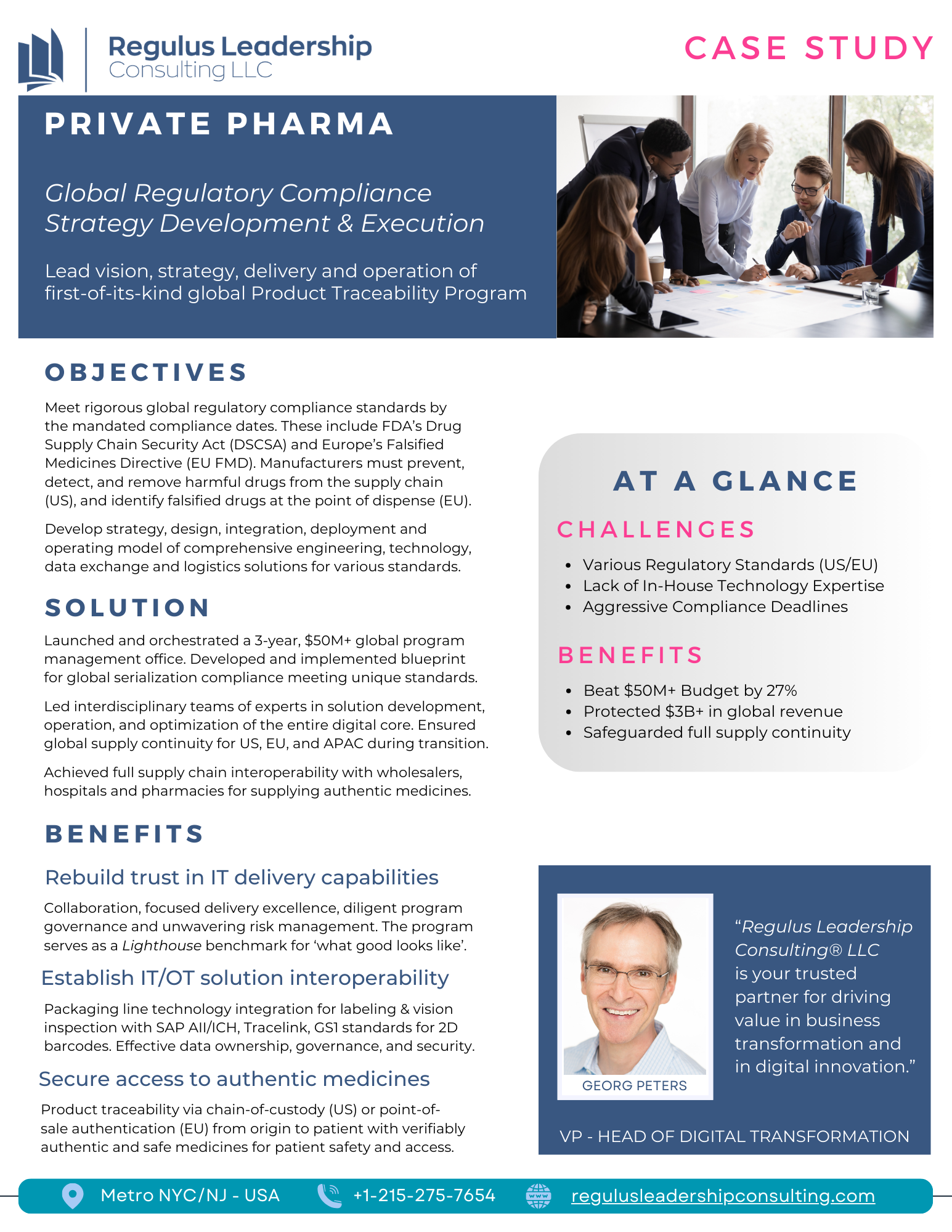 With the representative selection of case studies - reflecting our decades-long transformational successes - which we share with you here, we want to provide a summary view into the contextual complexities and business outcomes across innovative Fortune 500 companies, growth-oriented mid-size businesses, and smaller private firms, extending across the entire transformation life cycle.